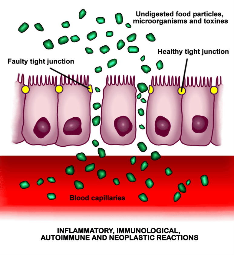 Under normale forhold fungerer tarmbarrieren godt. Hvis det oppstår lekkasje i barrieren, vil stoffer som ikke bør trenge igjennom tarmbarrieren, slik som store proteinmolekyler og bakterie toksiner, komme inn i blodbanen. Kroppen oppfatter disse partiklene som fremmede angripere, noe som utløser reaksjon i immunforsvaret. Dette kan bidra til utvikling av inflammatoriske og autoimmune sykdommer.
